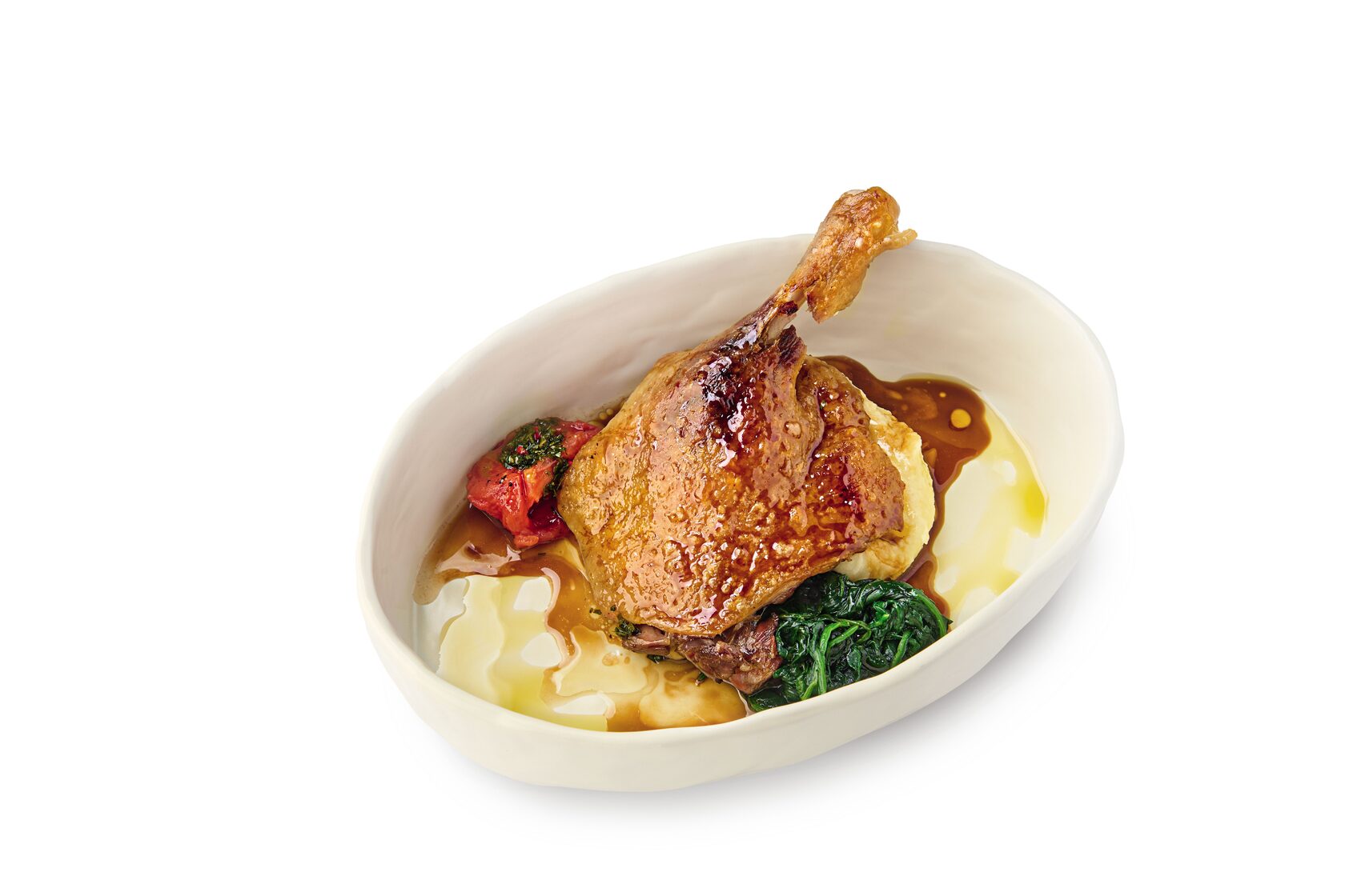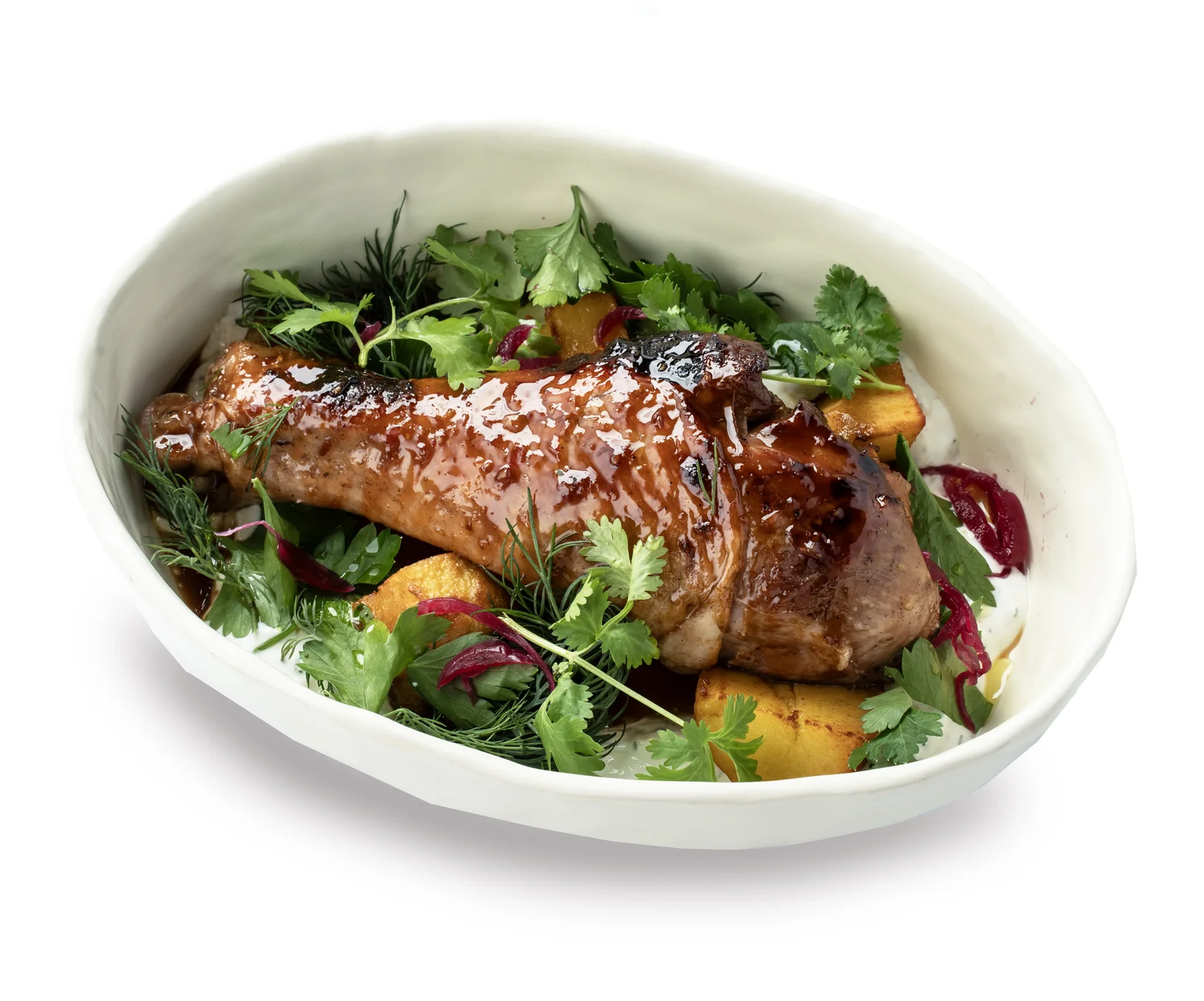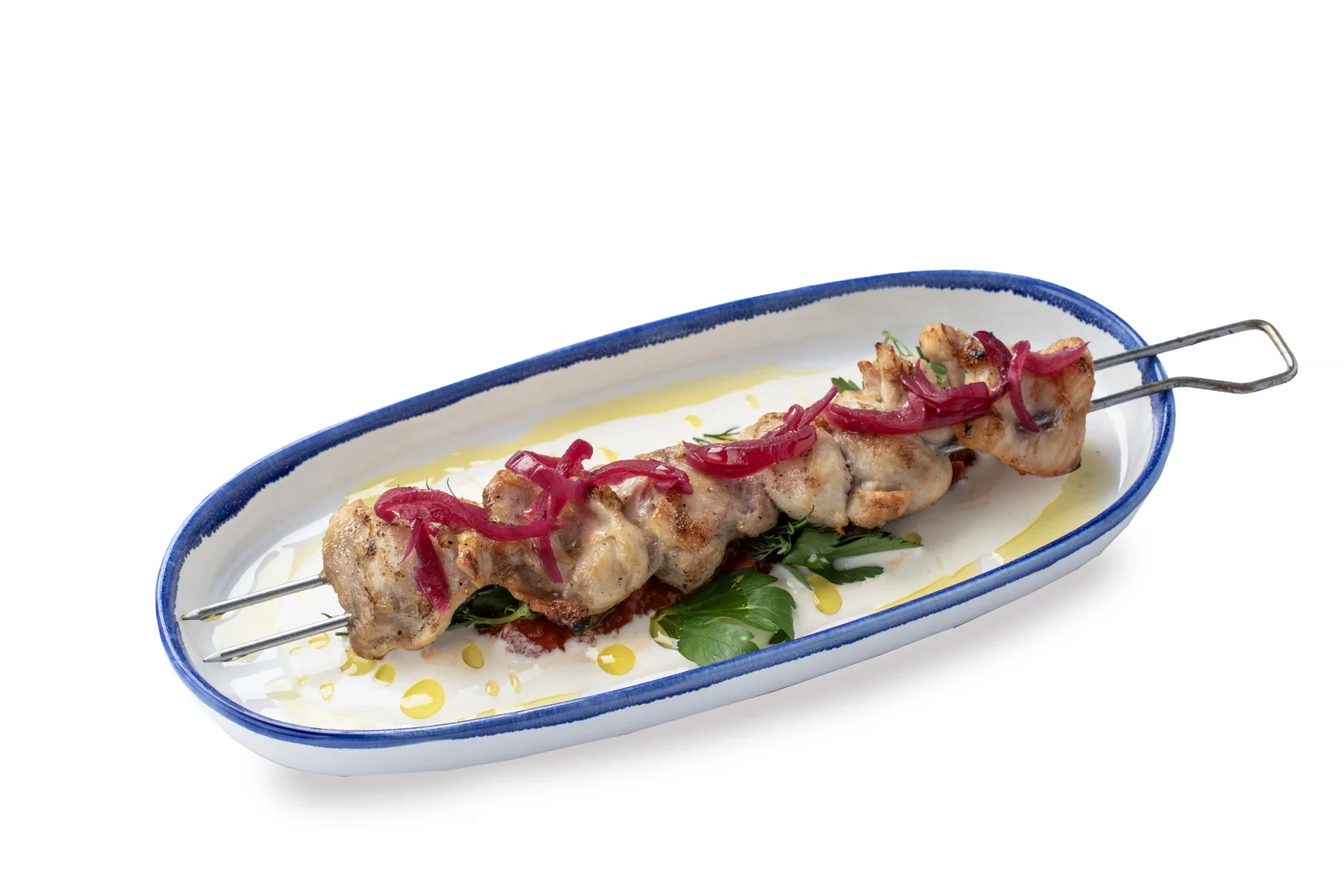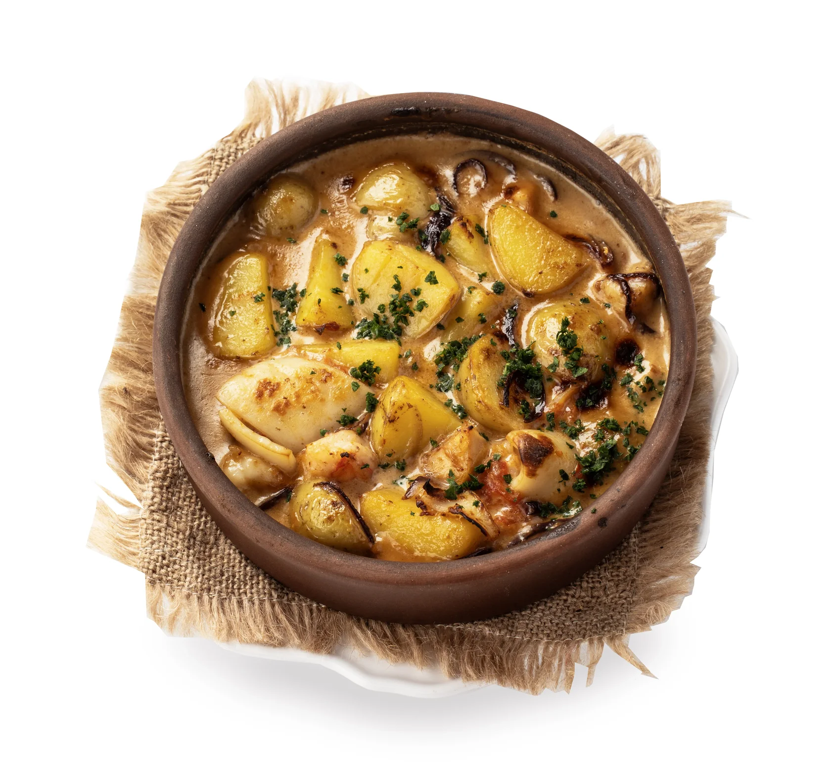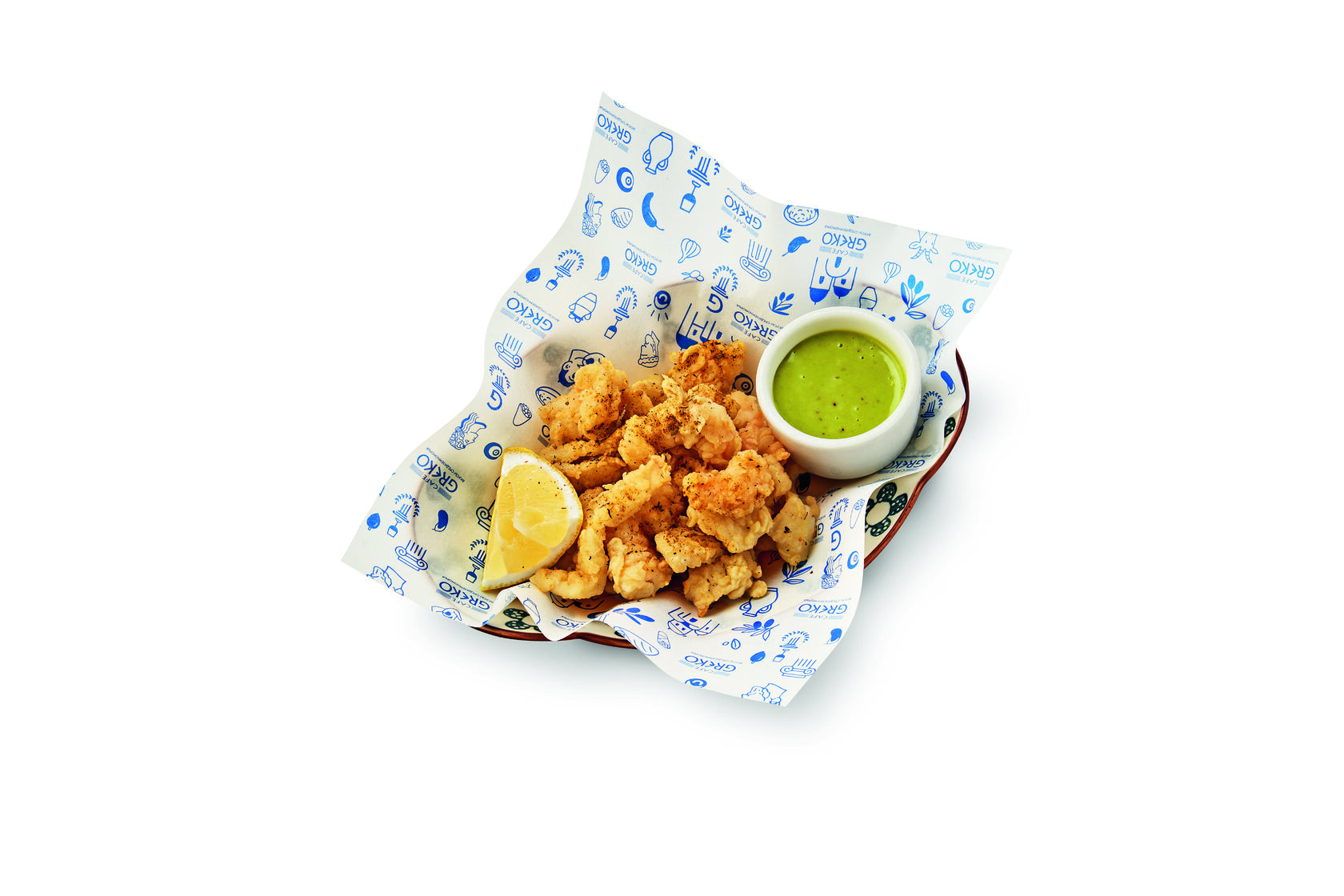 Марроканский осьминог с хумусом, печёным томатом и соусом лемон баттер