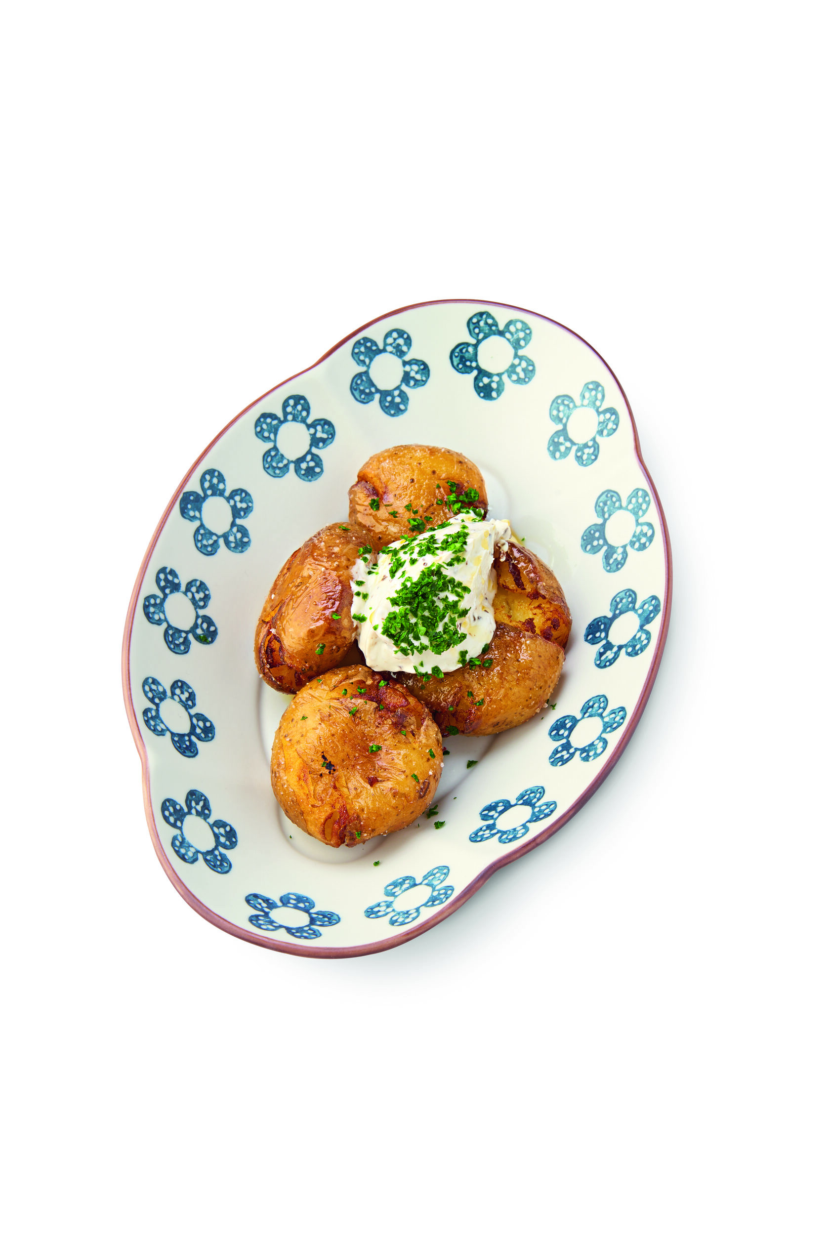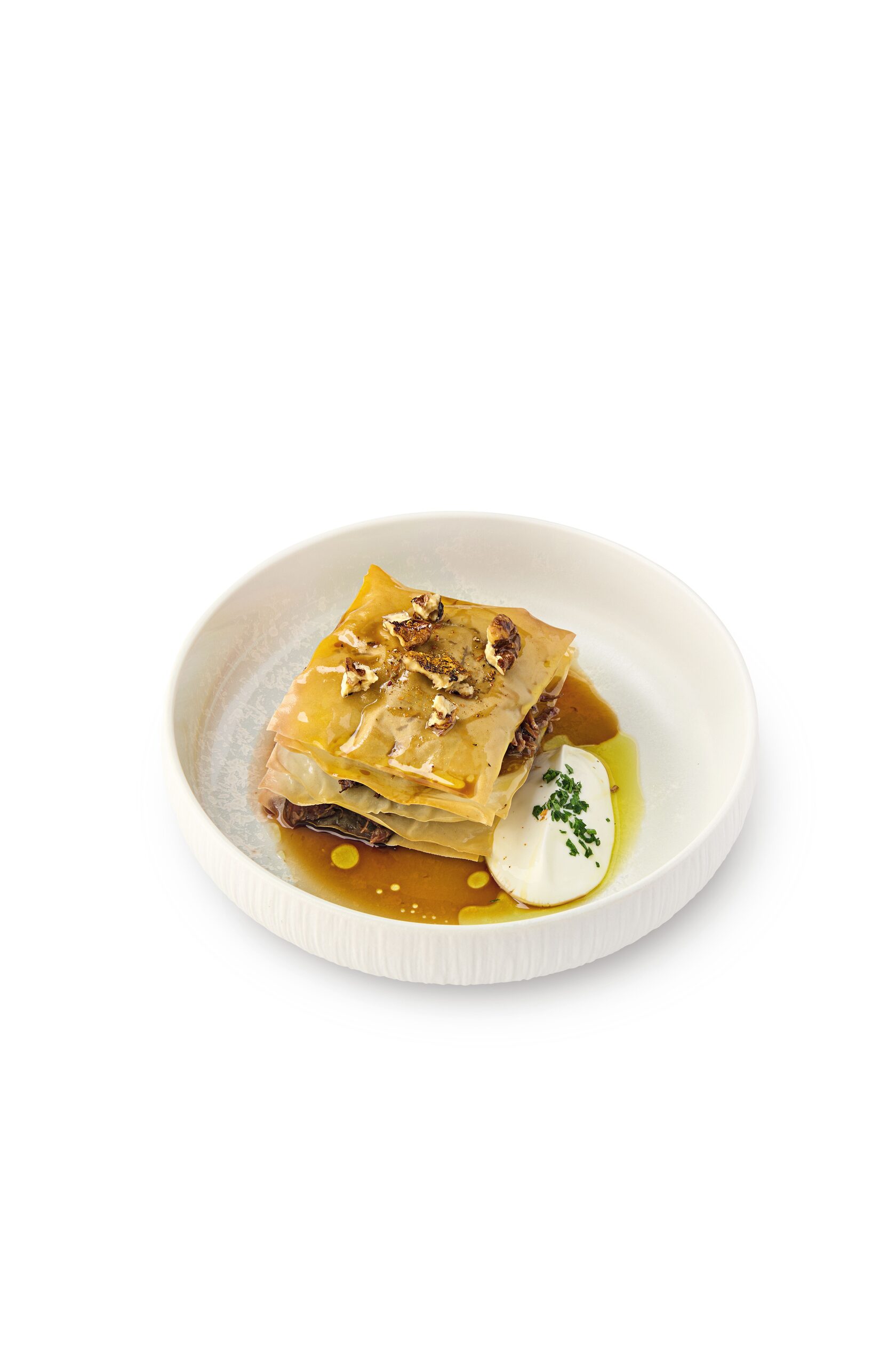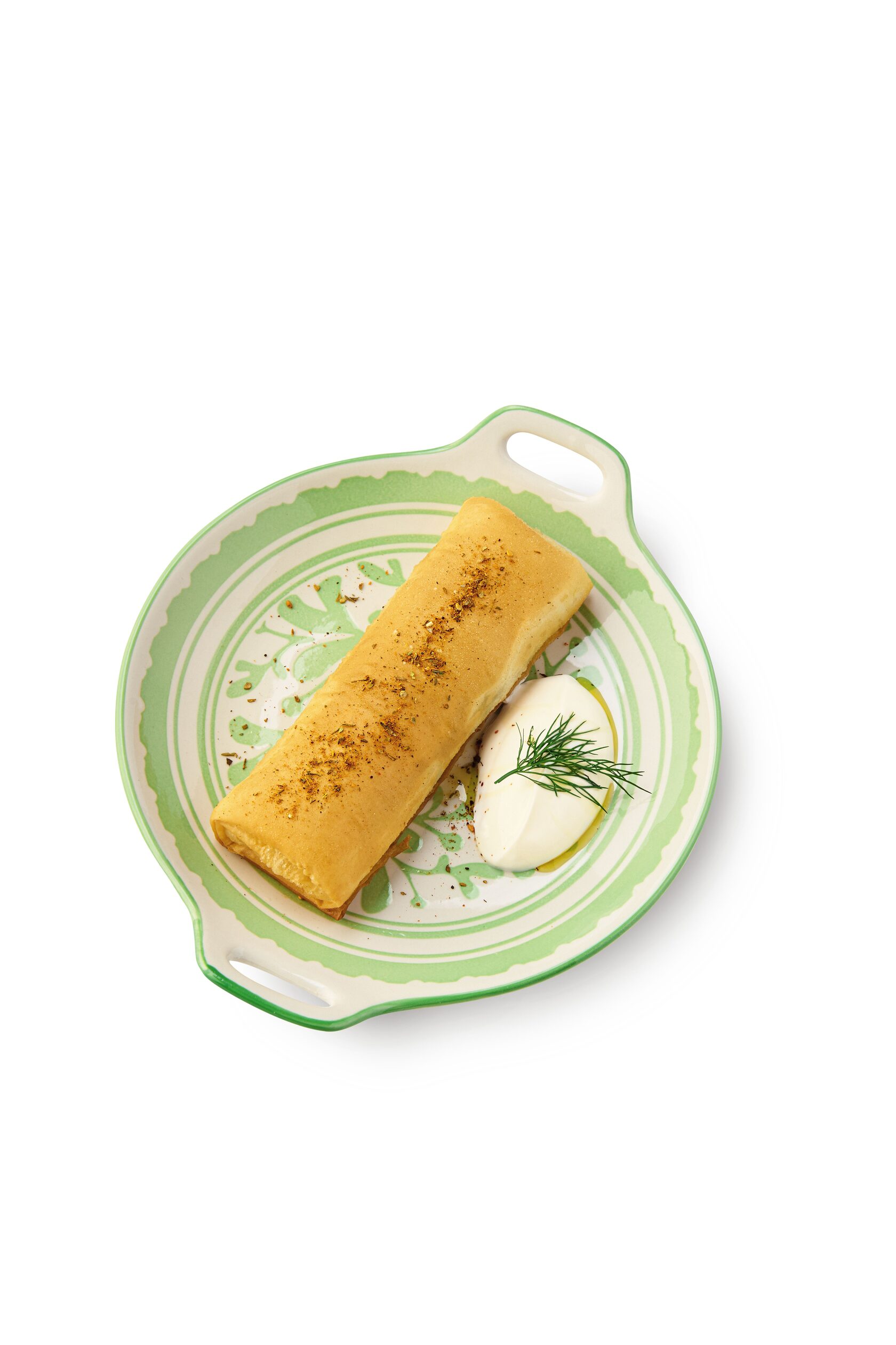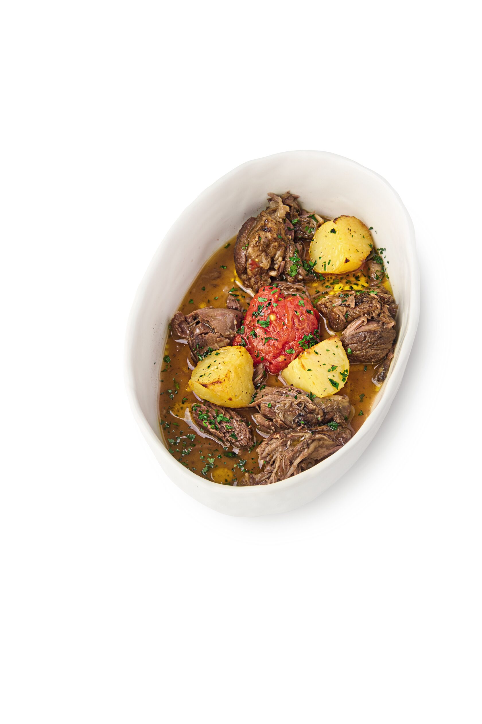 Марроканский осьминог с хумусом, печёным томатом и соусом лемон баттер