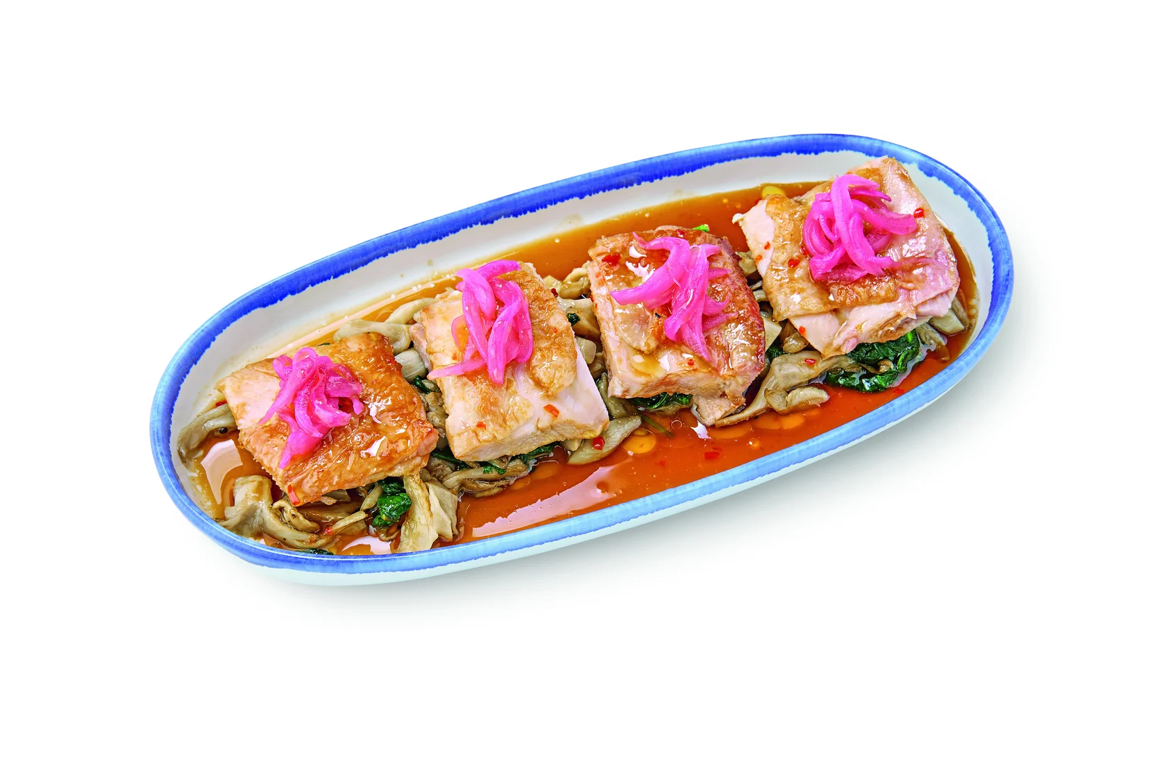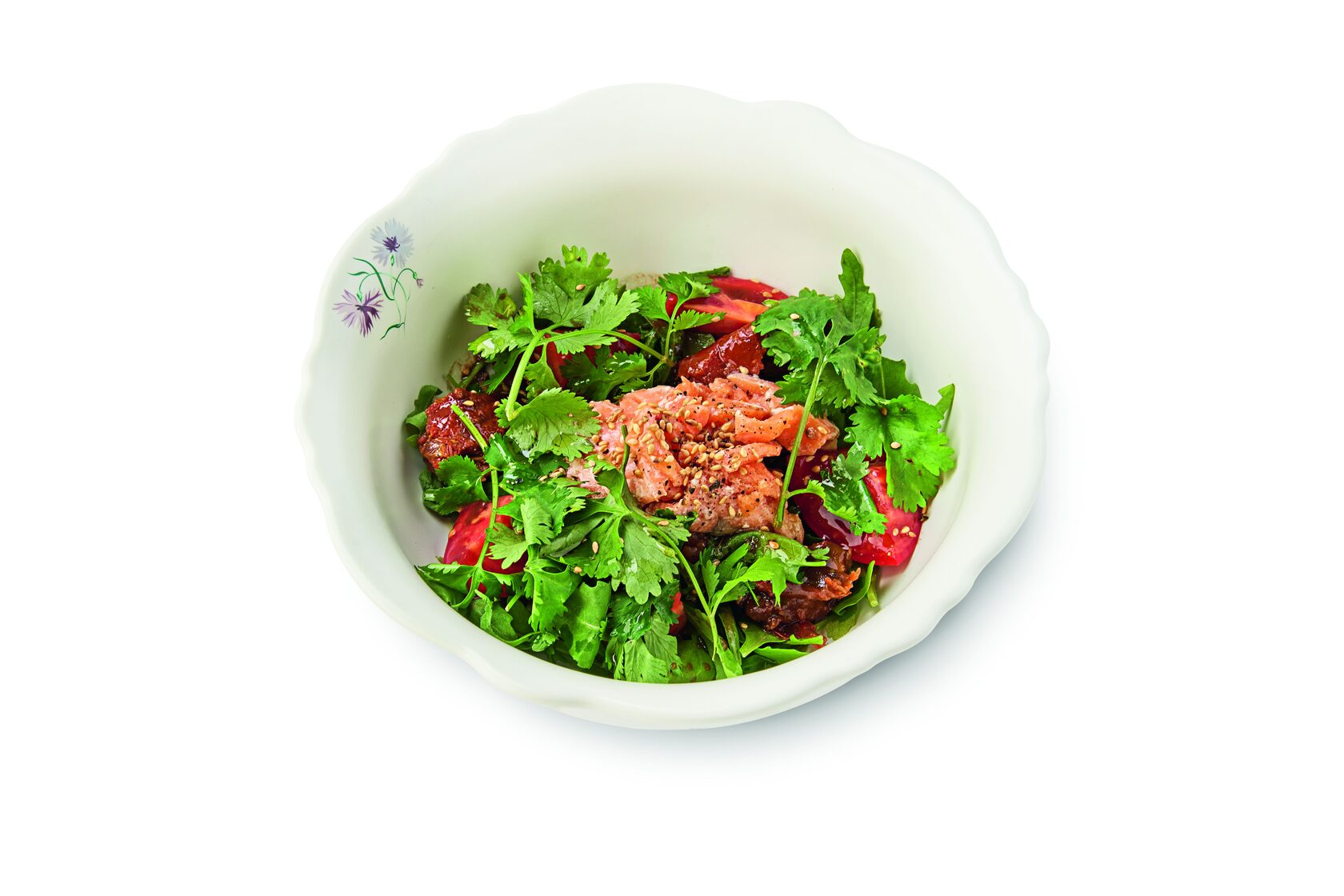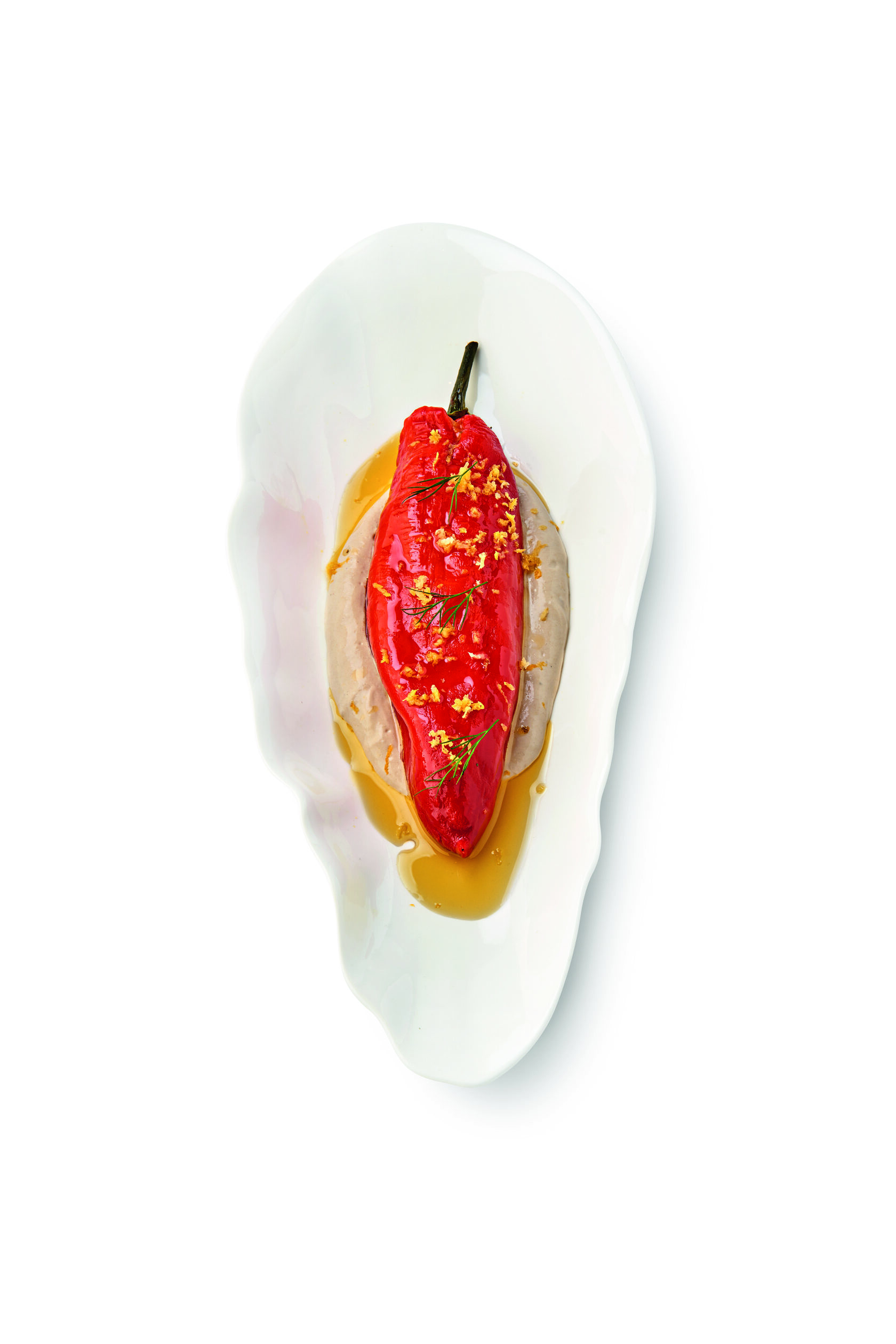 Перец рамиро с тартаром из тунца и соусом тоннато