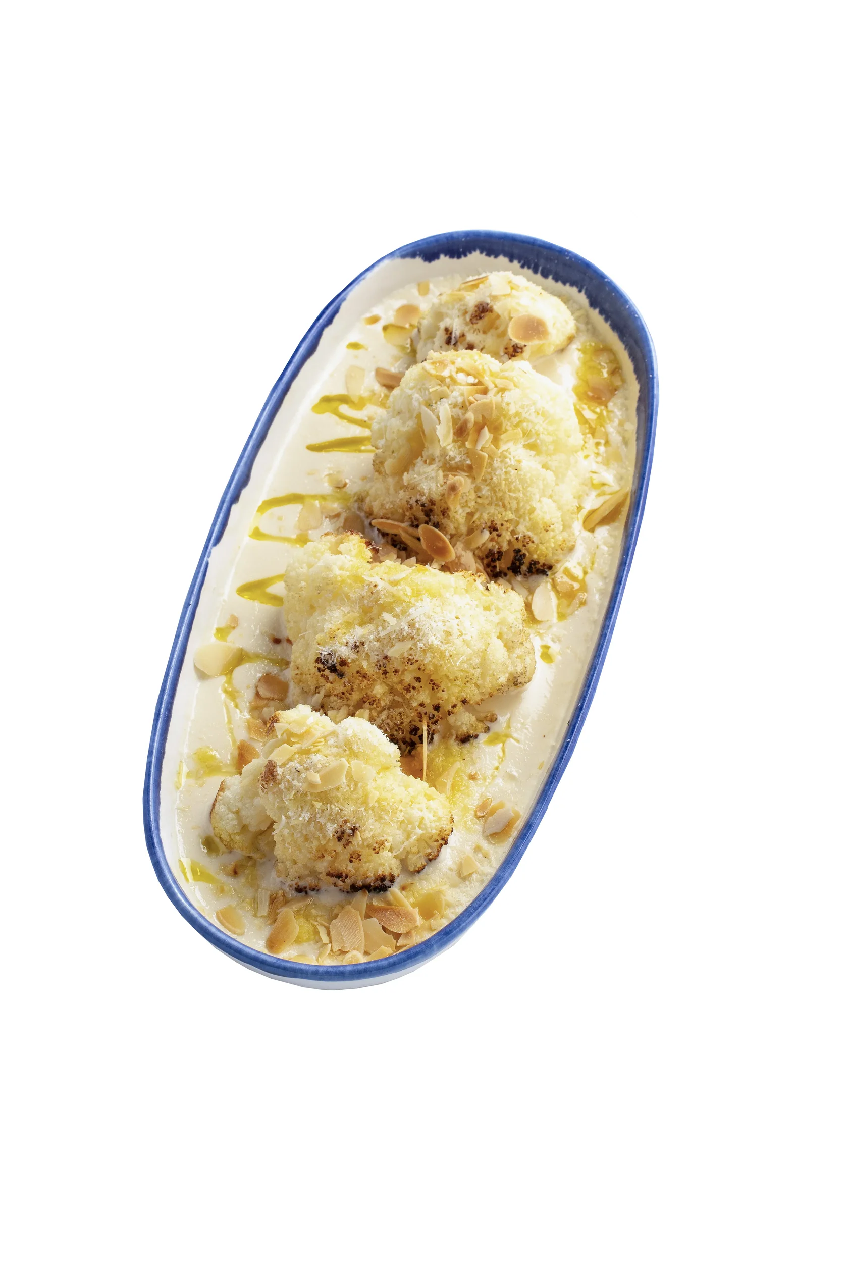 Цветная капуста с соусом из сыра пармезан с жареным миндалем